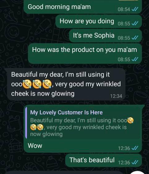 “I’ve used so many skincare product and none of them work for me, My face was so rough and people kept asking me if I was tired. My friend Introduce me to this product that in less than 3 weeks.... My face was transformed.